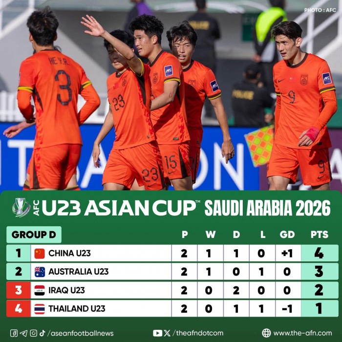 Chiến thắng đầy bất ngờ trước U23 Úc tại bảng D VCK U23 châu Á 2026 đã đưa U23 Trung Quốc chạm tới một cột mốc mang ý nghĩa lịch sử. Bị đánh giá thấp hơn đáng kể, thầy trò HLV Antonio Puche vẫn biết cách tạo nên khác biệt bằng lối chơi chặt chẽ, kỷ luật và tính toán hợp lý. Bàn thắng duy nhất của trận đấu không chỉ mang về 3 điểm quý giá mà còn được xem là dấu ấn lớn nhất của U23 Trung Quốc kể từ khi họ góp mặt ở sân chơi châu lục.