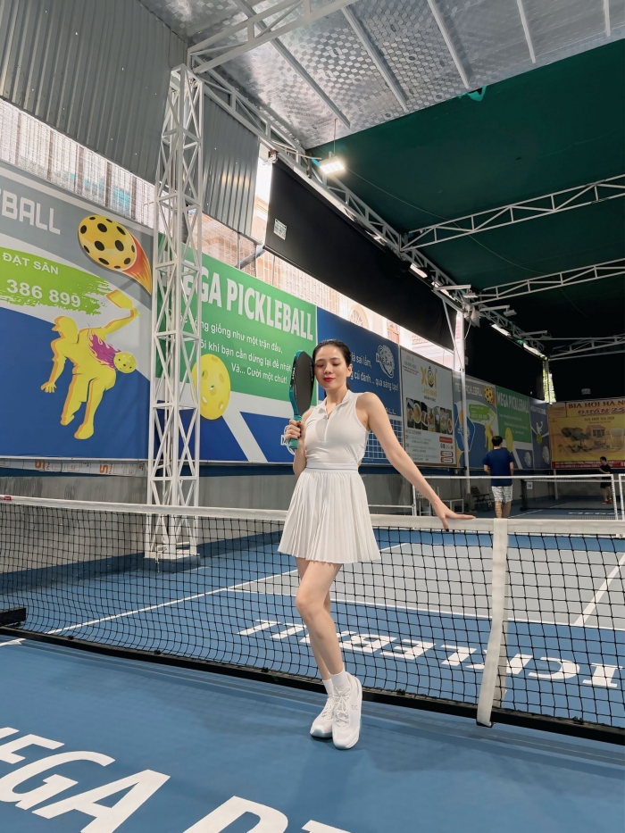 Trước khi vướng vào lùm xùm phát ngôn, Lệ Quyên cũng là một trong số những nghệ sĩ thường xuyên check in trên sân pickleball.