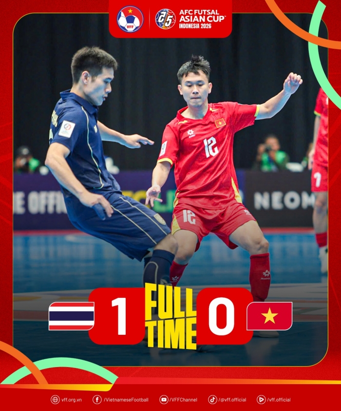 Dù tạo ra một thế trận không hề lép vế so với Thái Lan nhưng ĐT futsal Việt Nam vẫn ngậm ngùi nhận thất bại ở trận tranh ngôi đầu bảng B VCK futsal châu Á 2026.