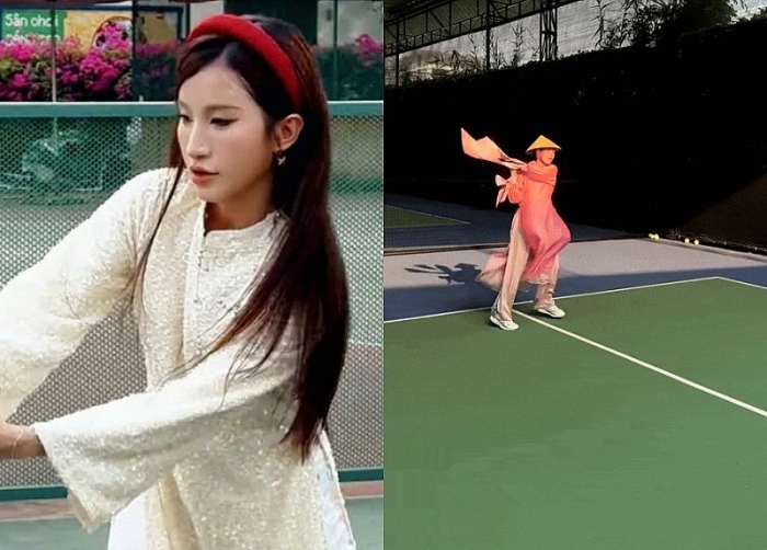 Hình ảnh áo dài tung bay cùng những pha đánh bóng tạo nên sự đối lập thú vị, vừa hài hước vừa độc đáo, nhanh chóng thu hút sự chú ý và lan tỏa mạnh mẽ trên mạng xã hội. Không chỉ xuất hiện trong các bộ ảnh dạo phố hay concept Tết quen thuộc, áo dài còn "lấn sân" sang không gian thể thao.