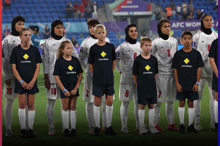 Trên sân Gold Coast (bang Queensland, Australia) tối 2/3, các cầu thủ Iran đứng nghiêm trang, hướng mắt về phía trước khi quốc ca vang lên nhưng tất cả đều giữ im lặng. Một vài người trao đổi ngắn với nhau, trong khi ban huấn luyện và các cầu thủ dự bị cũng không biểu lộ cảm xúc đặc biệt, HLV Marziyeh Jafari chỉ nở nụ cười nhẹ.