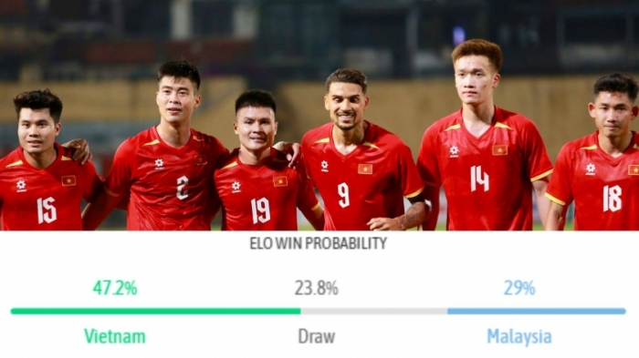 Theo dự đoán từ siêu máy tính Besoccer, cơ hội giành chiến thắng của Việt Nam đạt 47,2%, cao hơn mức 29% của Malaysia, trong khi khả năng hòa là 23,8%. Những con số này cho thấy cục diện trận đấu không quá chênh lệch và vẫn tiềm ẩn nhiều diễn biến khó lường.