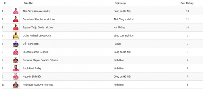 Ở nhóm đầu danh sách vua phá lưới, Alan của CAHN vẫn dẫn đầu với 14 bàn. Xếp sau là Lucao (11 bàn), Tagueu (10 bàn), cùng nhóm bám đuổi gồm Olaha, Hoàng Hên (9 bàn) và Leo Artur (8 bàn).