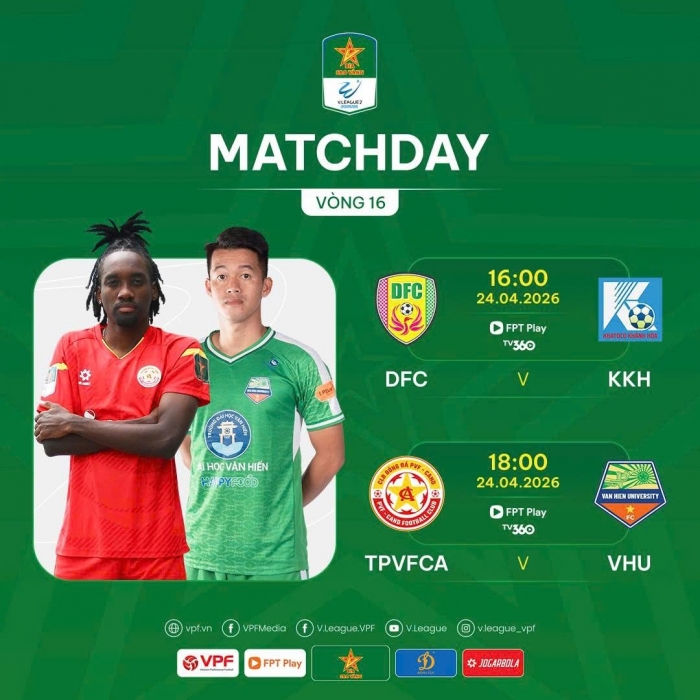 Ngoài ra, trong ngày 24/4 thì sân cỏ trong nước cũng sôi động trở lại với hàng loạt các trận đấu hấp dẫn của V.League cũng như giải hạng Nhất Quốc gia. Dưới đây là lịch thi đấu các giải quốc nội trong ngày hôm nay.