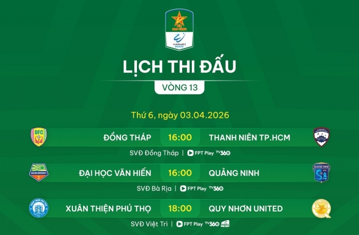 2 trận đấu còn lại trong chiều ngày 3/4 là những cuộc chạm trán giữa các đội nằm ở nhóm giữa BXH V.League 2. Đại học Văn Hiến tiếp đón Quảng Ninh trong khi Phú Thọ sẽ đối đầu Quy Nhơn United.