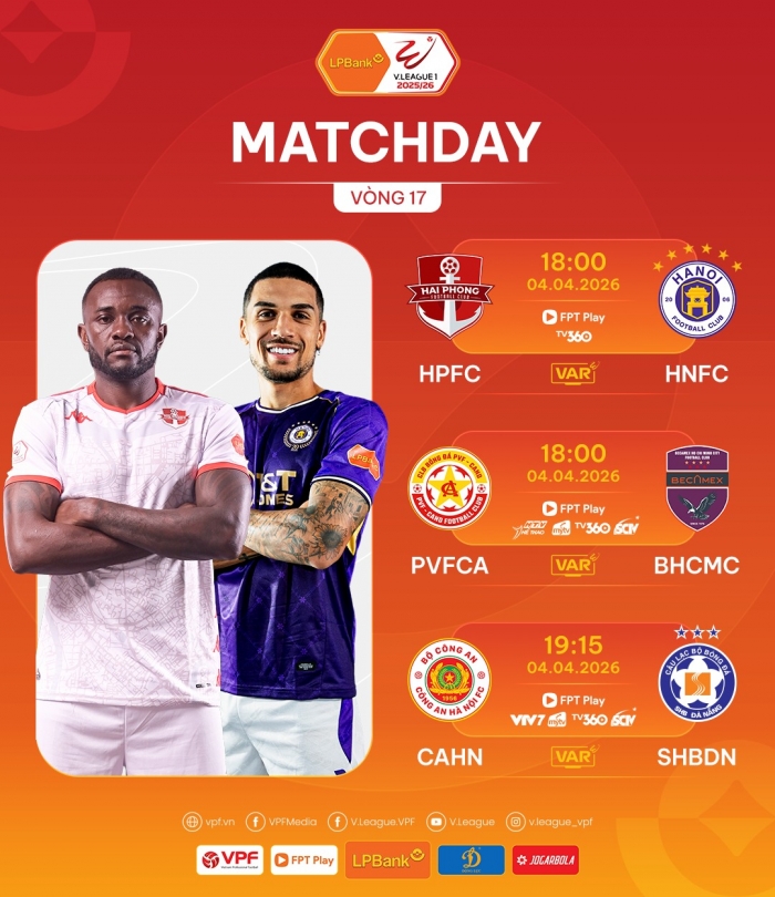 Bên cạnh trận đấu diễn ra lúc 20h00 của U20 nữ Việt Nam thì trong chiều ngày 4/4 còn diễn ra các trận đấu vô cùng hấp dẫn của vòng 17 V.League 2025/26. Cuộc đối đầu được mong chờ nhất sẽ là trận đấu giữa Hải Phòng và Hà Nội tại chảo lửa Lạch Tray.