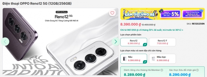 Cuối tháng 10, khách Việt có thể dễ dàng sở hữu chiếc OPPO Reno12 5G với giá chỉ từ 8.390.000 đồng cho cấu hình RAM 12GB và bộ nhớ 256GB. Như vậy, giá OPPO Reno12 5G hiện rẻ chưa bằng nửa Galaxy S25.