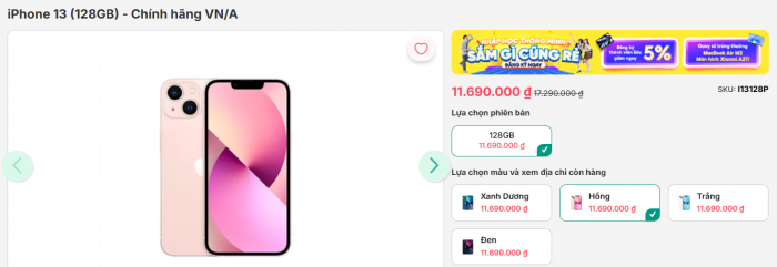 Cập nhật mới nhất ngày 7/10, giá đập hộp iPhone 13 rẻ nhất chỉ từ 11.690.000 đồng cho cấu hình 128GB cơ bản. Với giá bán này, iPhone 13 chỉ rẻ bằng nửa iPhone 17 mới ra mắt.
