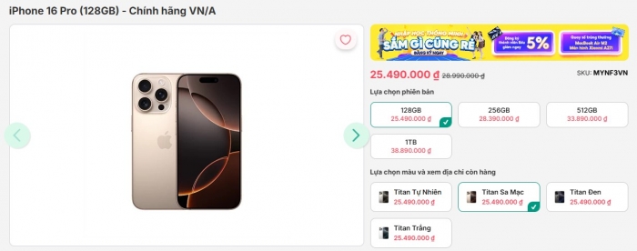 - iPhone 16 Pro - 128GB: 25.490.000 đồng