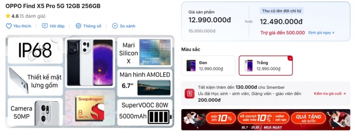 Hiện tại, OPPO Find X5 Pro đang được bán với giá chỉ 12.99 triệu đồng cho bản 256GB, rẻ át vía iPhone 13.