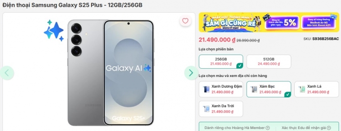 Bước sang tháng 10, giá Galaxy S25 Plus đang được giảm từ 5,5 - 6 triệu đồng, ở mức 21.49 triệu cho mẫu 256GB, tăng lên 24.49 triệu cho mẫu 512GB. Với giá bán này, Galaxy S25 Plus vẫn đang rẻ hơn đối thủ iPhone Air từ 10 - 13 triệu đồng, đủ mua thêm cả một chiếc điện thoại cận cao cấp khác.