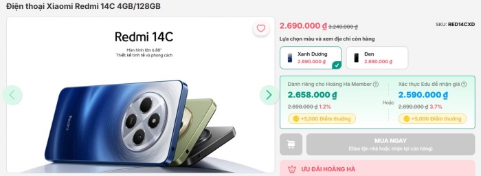 Hiện tại, Redmi 14C đang được phân phối chính hãng với giá chỉ 2.690.000 đồng cho bộ nhớ 128GB. Giá bán rẻ đầu tháng 11 khiến Galaxy A05 cũng phải dè chừng.