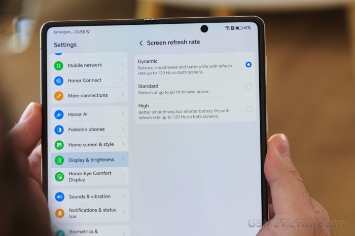 Magic V5 sở hữu màn hình gập 7.95 inch và màn hình ngoài 6.43 inch, đều dùng công nghệ LTPO 8T, tần số quét 120Hz và độ sáng lên tới 5000 nits, hiển thị rực rỡ trong mọi điều kiện ánh sáng.