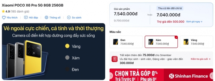 Hiện tại, khách Việt có thể sở hữu chiếc POCO X6 Pro 5G với giá chỉ 7.540.000 đồng cho cấu hình 8GB/256GB, biến nó trở thành đối thủ đáng gờm của Galaxy A56 5G nhà Samsung.