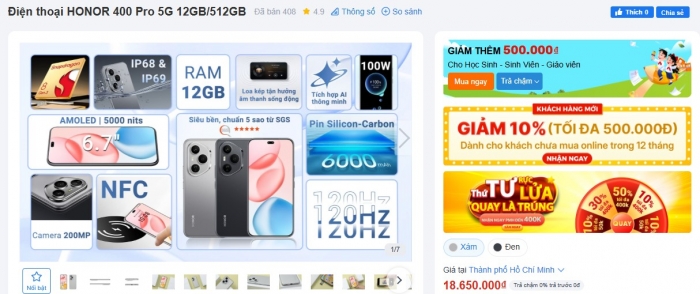HONOR 400 Pro 5G là flagship cao cấp bậc nhất của HONOR được phân phối chính hãng tại Việt Nam. Mặc dù có giá bán chỉ từ 18.650.000 đồng nhưng chiếc điện thoại này lại sở hữu loạt trang bị cao cấp được đánh giá cao hơn cả iPhone 17.