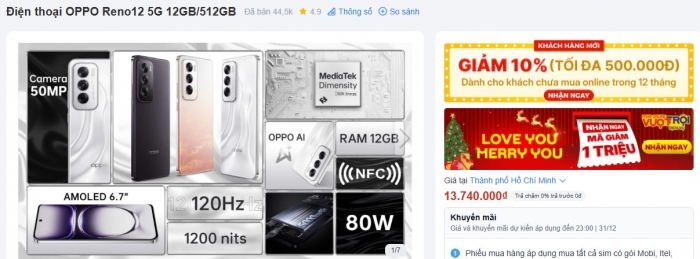 Trong đó, OPPO Reno12 5G là chiếc smartphone tầm trung đang được nhiều khách Việt quan tâm. Với giá đập hộp chỉ 13.740.000 đồng cho cấu hình RAM 12GB và bộ nhớ 512GB, điện thoại OPPO vẫn mang đến loạt trải nghiệm xịn chẳng kém Galaxy S25 đắt hơn cả chục triệu.
