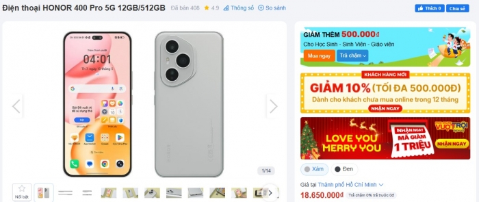 Hiện tại, khách Việt có thể sở hữu HONOR 400 Pro với giá 18.650.000 đồng cho cấu hình RAM 12GB và bộ nhớ 512GB, rẻ hơn 11 triệu đồng so với đối thủ Galaxy S25 Ultra cùng cấu hình lưu trữ.