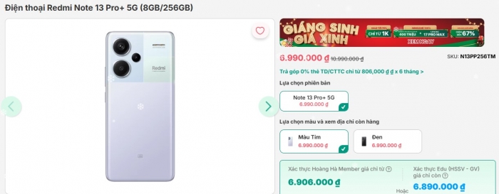 Cuối tháng 12, khách Việt có thể sở hữu chiếc Redmi Note 13 Pro+ 5G với giá chỉ 6.99 triệu đồng cho cấu hình 8GB/256GB, rẻ bằng 1/4 Galaxy S25 Ultra.