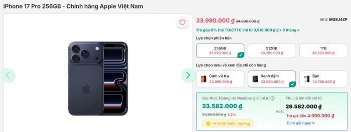 - iPhone 17 Pro - 256GB: 33.990.000 đồng