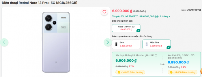 Cụ thể, Redmi Note 13 Pro+ 5G hiện đang được phân phối với giá chỉ 6.49 triệu đồng cho cấu hình 8GB/256GB, rẻ bằng 1/4 đối thủ Galaxy S25 Ultra nhưng trang bị không hề kém cạnh.