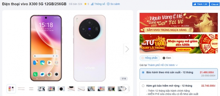 Cụ thể, giá vivo X300 5G đang được giảm hấp dẫn đầu tháng 1/2026, ở mức 21.490.000 đồng cho cấu hình RAM 12GB và bộ nhớ 256GB, rẻ hơn 6 triệu đồng so với Galaxy S25 Ultra.