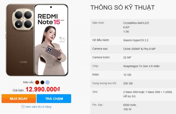 Hiện tại, Redmi Note 15 Pro+ 5G đang được phân phối chính hãng với giá 12.99 triệu đồng cho cấu hình 12GB/256GB, rẻ chưa bằng nửa Galaxy S25 Ultra nhưng vẫn sở hữu loạt trang bị ấn tượng như camera 200MP, pin 6.500 mAh và sạc 100W.
