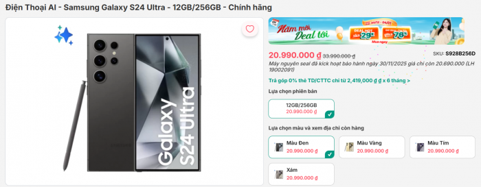 Cập nhật mới nhất ngày 3/1, giá đập hộp Galaxy S24 Ultra chỉ còn 20.99 triệu đồng cho cấu hình 12GB/256GB, rẻ hơn cả iPhone 16 bản thường với cùng bộ nhớ, biến nó trở thành smartphone Android cao cấp hấp dẫn bậc nhất thị trường Việt Nam hiện nay.