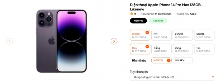 Hiện tại, iPhone 14 Pro Max đã hết hoàn toàn hàng mới fullbox tại thị trường Việt Nam, tuy nhiên hàng Like New chất lượng tốt giá rẻ vẫn còn khá nhiều: