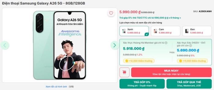 Ngoài dòng Galaxy S cao cấp, Samsung cũng gây ấn tượng với dòng Galaxy A tầm trung hỗ trợ bộ tính năng Galaxy AI thông minh. Trong đó, Galaxy A26 5G là phiên bản giá rẻ dưới 6 triệu nổi bật hàng đầu hiện nay.