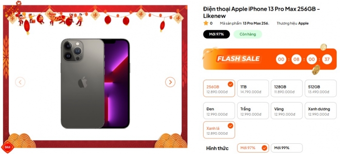 Hiện tại, iPhone 13 Pro Max chỉ còn hàng Like New 97% - 99% với giá dao động từ 12.89 triệu đồng - 14.29 triệu đồng tùy cấu hình lưu trữ. Với giá bán này, iPhone 13 Pro Max hiện chỉ rẻ bằng 1/4 người anh em iPhone 17 Pro Max.