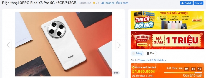 Mặc dù là smartphone Android mạnh mẽ top đầu nhưng sau khi OPPO ra mắt phiên bản Find X9 Pro thì Find X8 Pro đã trở thành dòng sản phẩm cũ và được các đại lý bán lẻ ưu đãi cực hấp dẫn.