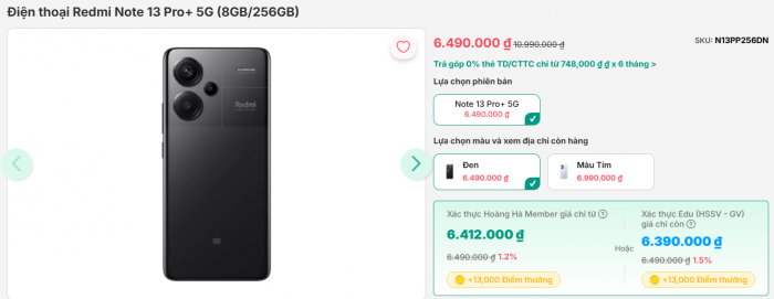 Hiện tại, chiếc Redmi Note 13 Pro+ 5G bản 256GB đang được bán với giá chỉ 6.49 triệu đồng, rẻ áp đảo đối thủ Galaxy A36 5G.