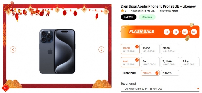 - iPhone 15 Pro - 128GB: 14.990.000 đồng