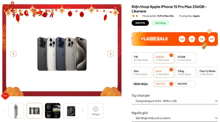 Hiện tại, mặc dù đã hết hàng fullbox trên thị trường nhưng iPhone 15 Pro Max bản Like New giá rẻ hơn còn rất nhiều, chất lượng không kém bản đập hộp. Cụ thể, giá iPhone 15 Pro Max Like New rẻ nhất được ghi nhận như sau: