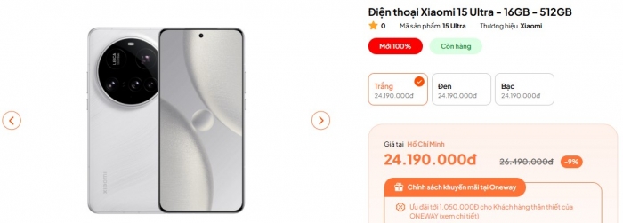 Cụ thể, giá Xiaomi 15 Ultra cập nhật mới nhất ngày 4/2 chỉ còn 24.19 triệu đồng cho cấu hình 16GB/512GB, rẻ hơn Galaxy S25 Ultra hơn 5 triệu đồng và rẻ hơn iPhone 17 Pro Max gần nửa giá.