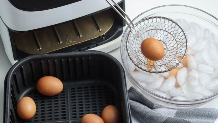 Sau khi hoàn tất, ngâm trứng vào nước đá để dễ bóc vỏ.