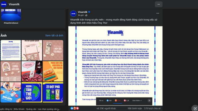 Bài đăng trên fanpage tối ngày 30/10 của Vinamilk được nhiều người khen ngợi là phản ứng truyền thông khéo léo, thể hiện tinh thần chuyên nghiệp và tôn trọng khán giả. Tuy nhiên, điều khiến dư luận bất ngờ hơn khi bài viết lại nhận về hơn 7.000 lượt phẫn nộ, khiến nhiều người đặt nghi vấn: Liệu thương hiệu đang bị “buff phẫn nộ” có chủ đích sau khi lên tiếng bảo vệ bản quyền hình ảnh nhân vật Ông Thọ, thuộc nhãn hàng Sữa Ông Thọ của Vinamilk?