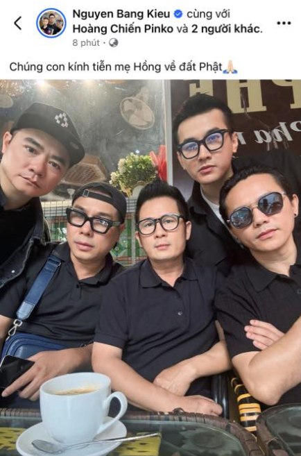 Đáng chú ý, trong ngày tang lễ diễn ra, nam ca sĩ Bằng Kiều đã đăng tải bức ảnh selfie nhóm 5 người với dòng trạng thái: “Chúng con kính tiễn mẹ Hồng về đất Phật”. Sau đó không lâu, nam ca sĩ vội xóa bức ảnh chụp nhóm và thay thế bằng một bức hình khác do gặp phải nhiều bình luận trái chiều từ khán giả.