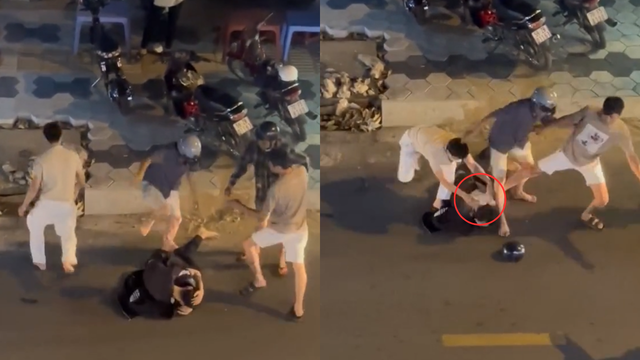 Nhóm đối tượng này liên tiếp dùng tay, chân đánh, đấm vào vùng mặt, cơ thể và phần đầu của các nạn nhân khiến cả 2 chỉ biết ôm đầu chịu trận. Khi 1 trong 2 người bị quật ngã, 1 đối tượng trong nhóm hành hung đã dùng viên gạch lớn đập mạnh vào đầu khiến nạn nhân gục xuống đường.