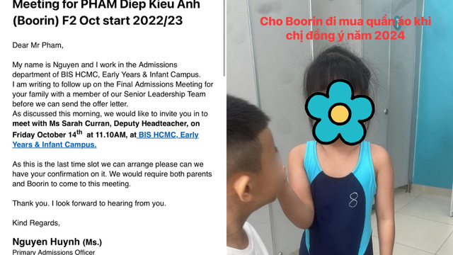 Đức Phạm thông tin thêm: "Tất cả những gì liên quan đến việc đưa đón con, học phí hay sinh hoạt hàng ngày, tôi đều sẵn sàng đáp ứng đầy đủ, chỉ xin chị cho phép hai đứa học cùng nhau để tiện lợi và gắn kết. Tôi vẫn nhớ tại tòa, cả chị và tôi đều không yêu cầu đối phương chu cấp. Tôi tự nguyện cấp dưỡng cho con 50 triệu đồng mỗi tháng, và đã liên hệ chị để thỏa thuận về việc con học chung. Chị đáp rằng chị sẽ lo cho con theo khả năng của mình và không cần gì từ tôi – một lời nói nghe có vẻ độc lập, nhưng thực chất che giấu ý đồ khác.