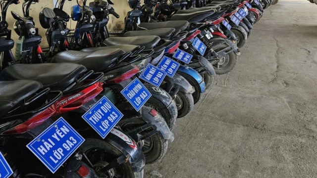 Hình ảnh 400 chiếc xe điện của các em học sinh tại một trường cấp 2 trên địa bàn tỉnh Phú Thọ được gắn biển tên đang thu hút sự chú ý của cư dân mạng về tính đúng - sai của sự việc.