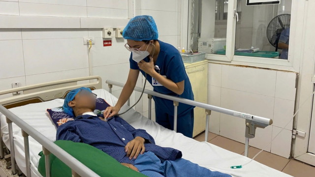 Tại Khoa hồi sức tích cực tại bệnh viện Thanh Nhàn, các bác sĩ tiếp nhận H. trong tình trạng hôn mê sâu, phổi trắng xóa, tim đập rời rạc và nồng độ oxi trong máu gần như về 0.