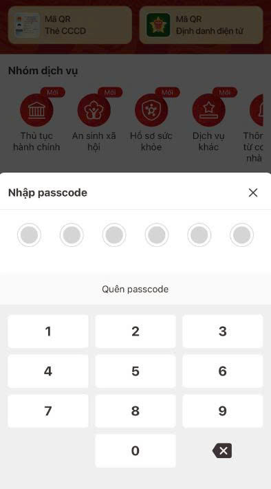 Nhập mật khẩu gồm 06 số (passcode) để truy cập.