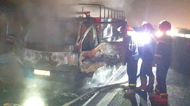 Rạng sáng nay, ngày 12/12, một chiếc xe tải có biển kiểm sát 86C-048.XX trong lúc lưu thông theo hướng Bắc - Nam trên cao tốc Dầu Giây - Phan Thiết, đoạn qua khu vực xã Tân Lập, Lâm Đồng bất ngờ bốc cháy dữ dội, khói bốc mù mịt.