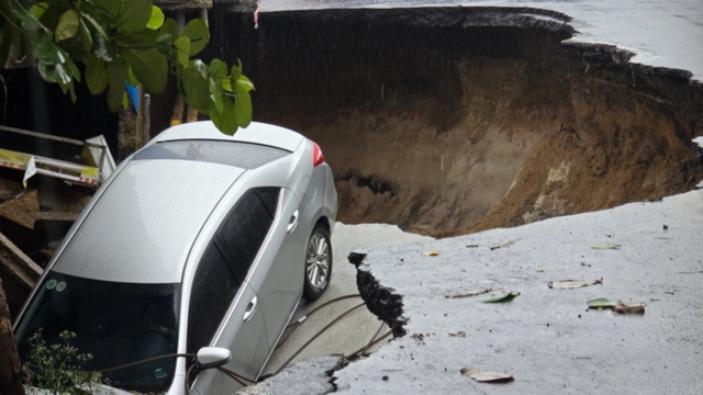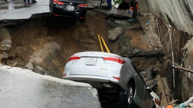 Hình ảnh hiện trường hố tử thần 'nuốt trọn' ô tô con tại Đà Nẵng, công an làm rõ nguyên nhân sự cố