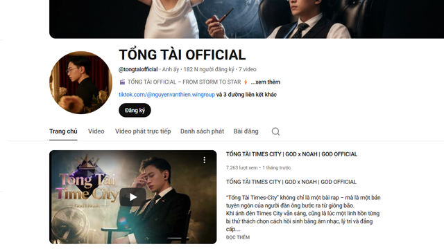 Theo tìm hiểu, kênh YouTube "TỔNG TÀI OFFICIAL" của Nguyễn Văn Thiên hiện đã cán mốc 182.000 người đăng ký, một con số mơ ước với nhiều nhà sáng tạo nội dung.
