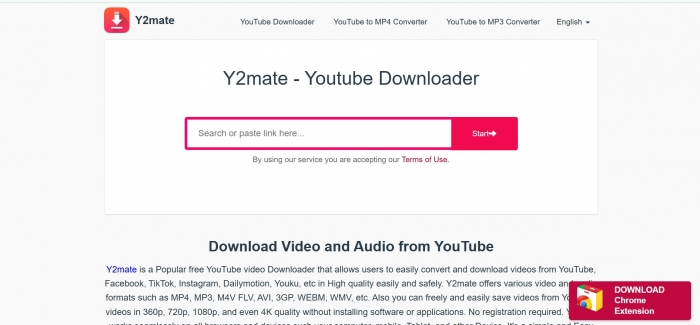 Y2mate là một công cụ chuyển đổi YouTube trực tuyến phổ biến, cho phép người dùng tải xuống video và tệp âm thanh trực tiếp từ YouTube mà không cần cài đặt phần mềm. Nó hỗ trợ nhiều định dạng đầu ra, bao gồm MP4, MP3, v.v. Nền tảng này nhanh chóng, đơn giản và có thể truy cập trên cả trình duyệt máy tính và thiết bị di động, khiến nó trở thành một công cụ tiện lợi để chuyển đổi video YouTube nhanh chóng.
