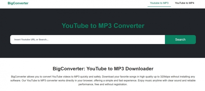 BigConverter là một công cụ chuyển đổi video và âm thanh trực tuyến cho phép người dùng tải xuống và chuyển đổi video YouTube nhanh chóng. Công cụ hỗ trợ nhiều định dạng và độ phân giải, có thể truy cập từ bất kỳ thiết bị nào có trình duyệt. Nền tảng này rất đơn giản và không yêu cầu đăng ký tài khoản, giúp bạn nhanh chóng chuyển đổi nội dung để sử dụng ngoại tuyến.
