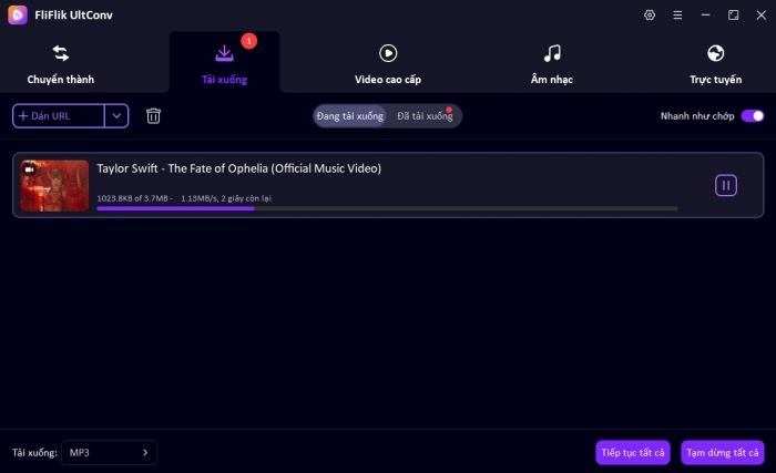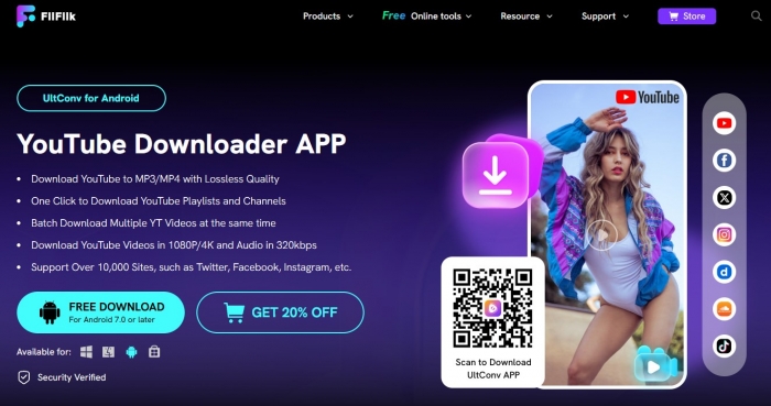 FliFlik UltConv YouTube Converter là một công cụ mạnh mẽ và đa năng được thiết kế cho bất kỳ ai muốn chuyển đổi nhạc YouTube sang MP3 hoặc tải xuống video từ 10.000 nền tảng phát trực tuyến. Cho dù bạn muốn lưu các bài hát, danh sách phát hay buổi phát trực tiếp yêu thích, UltConv YouTube Converter đều mang đến một cách thức liền mạch để thưởng thức nội dung ngoại tuyến. Với khả năng tải xuống độ phân giải cao, xử lý hàng loạt và nhiều định dạng âm thanh, công cụ đảm bảo các tệp nhạc và video của bạn vẫn giữ nguyên chất lượng gốc, bao gồm cả siêu dữ liệu ID3.