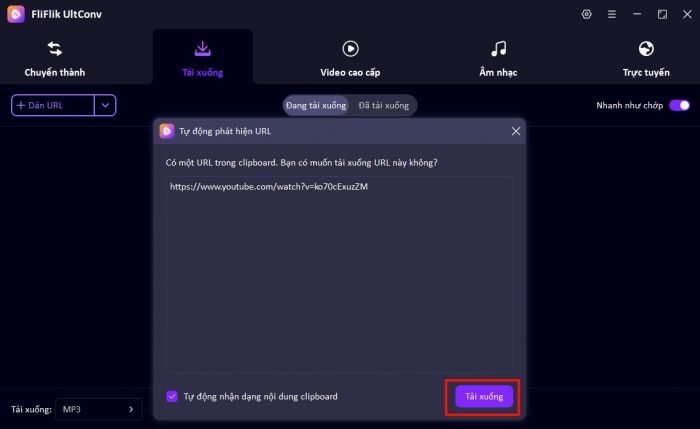 Bước 3: Quay lại UltConv. Nếu chương trình tự động phát hiện liên kết, chỉ cần nhấp vào Tải xuống để bắt đầu lưu video.